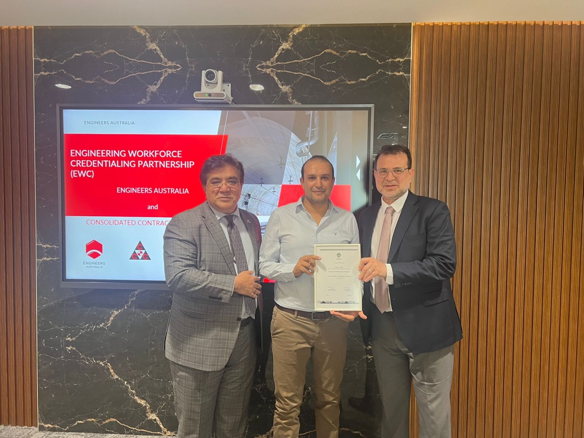 Doha, Qatar: Consolidated Contractors Company (CCC), a global leader in engineering, procurement, and construction, has announced the accreditation of its first batch of chartered engineers by Engineers Australia. This significant achievement highlights CCC’s commitment to fostering excellence in the engineering profession.
