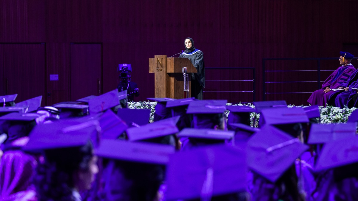 In a unique, full-circle moment, Her Excellency Sheikha Najwa bint Abdulrahman Al-Thani, undersecretary at the Ministry of Labour in Qatar and Class of 2015 alumna, returned to the stage as this year’s graduation speaker, a decade after delivering the student address at her own graduation. Reflecting on the transformation from student to professional, she said, “The Najwa that went to Northwestern feels like a different person from a different life.” Her speech balanced humor with heartfelt advice, encouraging the Class of 2025 to “trust the process, play the long game, and change the way you see yourself.”