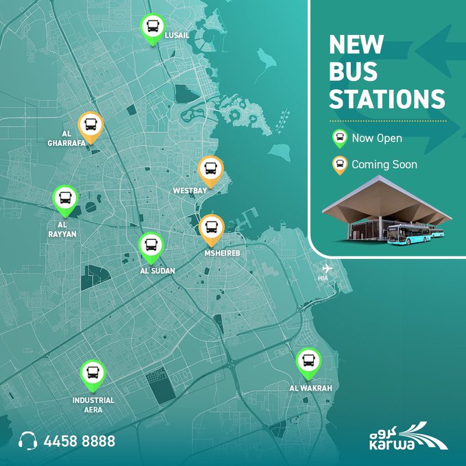 Doha: Mowasalat, on their Twitter account, announced that five new bus stations are now open across Qatar in coordination with the ministry of transportation. The new bus stations are located at Lusail, Al Rayyan, Al Sudan, Industrial Area and Al Wakrah. Three more bus stations will be opening soon in Al-Gharafa, WestBay and Msherib.