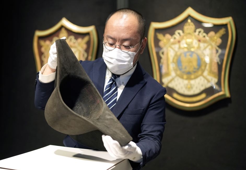 Described by Bonhams as the "first hat to bear the Emperor's DNA", it is on display in Hong Kong before it moves to Paris and then London, where it will be auctioned on Oct. 27.