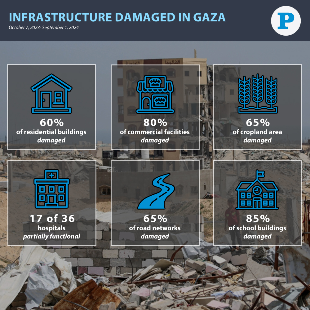 Meanwhile, the United Nations said Israel’s bombardment has damaged or destroyed two-thirds of buildings across the Strip. According to the latest data from the United Nations Office for the Coordination of Humanitarian Affairs, the World Health Organization and the Palestinian government as of September 1, Israeli attacks have damaged: