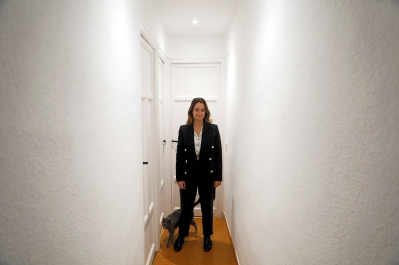 Valme Pardo poses in her "smart casual" back-to-work apparel at her home in Madrid, Spain, September 14, 2021. REUTERS/Susana Vera