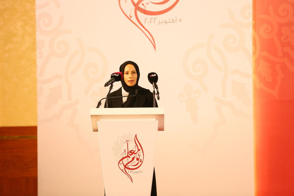 Minister of Education and Higher Education H E Buthaina bint Ali Al Jabr Al Nuaimi speaking during a ceremony on the occasion of World Teachers’ Day 2022.