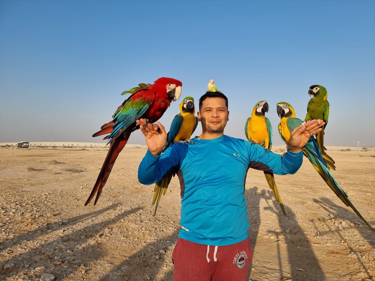 Free Flying Parrot Qatar engages in various activities including training, knowledge sharing sessions and most importantly, a dedicated bonding time with their companion birds.