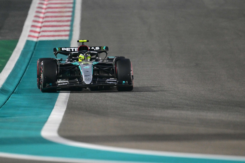 Mercedes' British driver Lewis Hamilton drives during the second practice session ahead of the Abu Dhabi Formula One Grand Prix at the Yas Marina Circuit in Abu Dhabi on December 6, 2024. (Photo by Giuseppe Cacace / AFP)