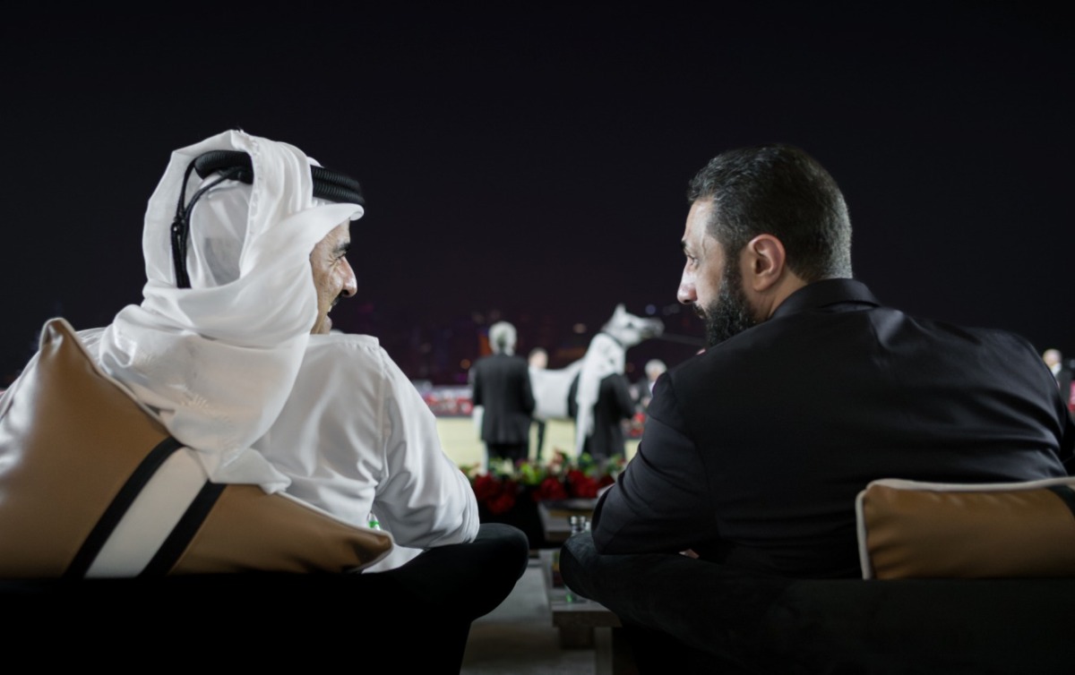 Doha: The Amir HH Sheikh Tamim bin Hamad Al-Thani and HE President of the sisterly Syrian Arab Republic Ahmed Al Sharaa, witnessed Saturday evening the World Arabian Horse Championship.