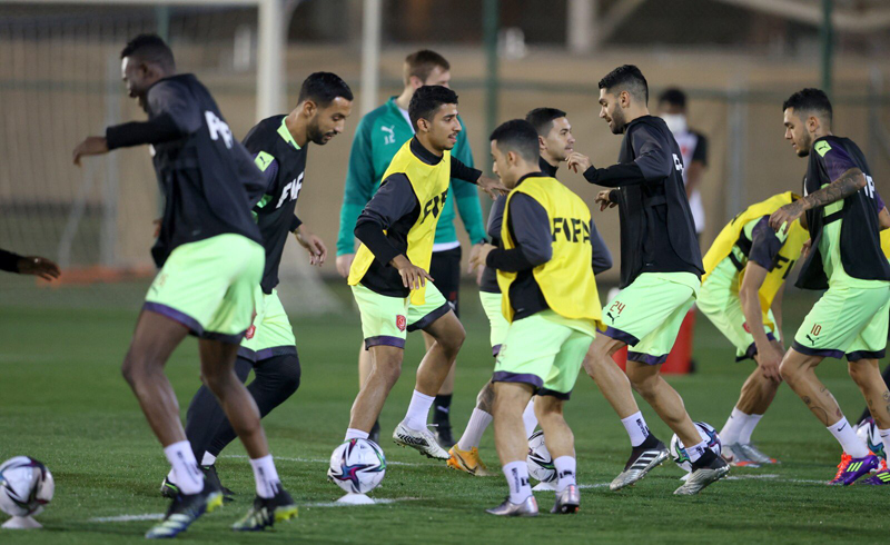 Al Duhail players during a training session yesterday.
