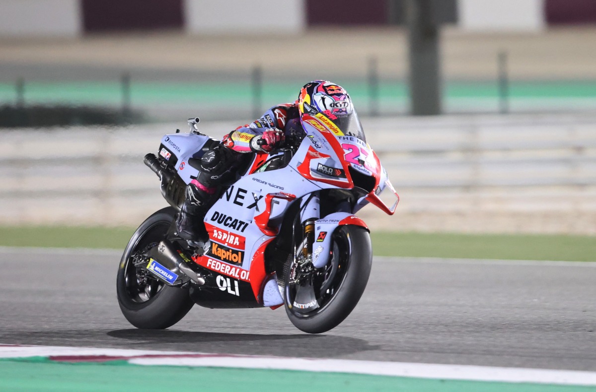 Gresini Racing's Enea Bastianini in action during the MotoGP race at the Losail International Circuit, yesterday.
