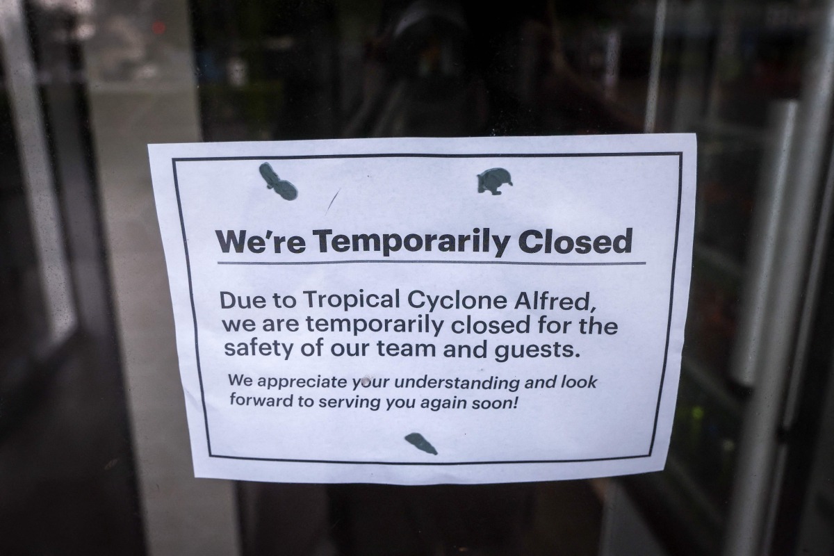 A sign is attached to the front window of a business at Surfers Paradise on the Gold Coast on March 7, 2025. Photo by DAVID GRAY / AFP