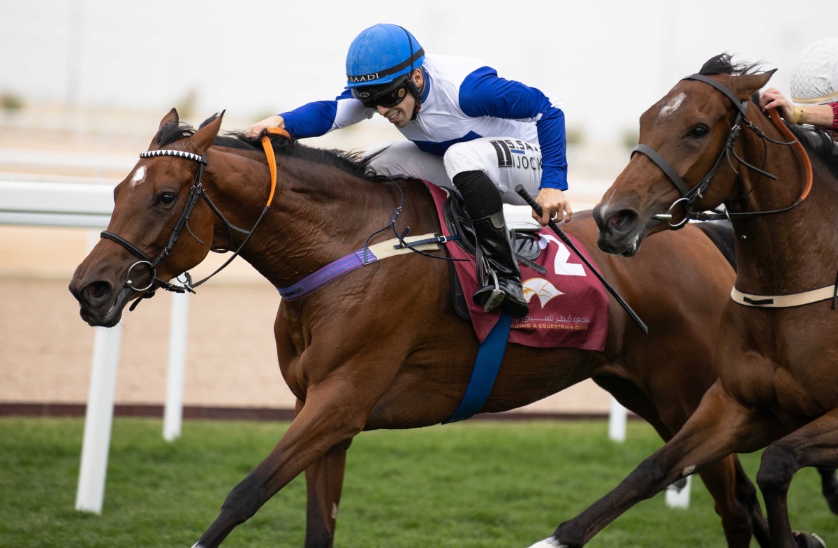 The filly, owned by Khalifa bin Sheail Al Kuwari and trained by Zuhair Mohsen, overtook leaders to claim her second career win in third career start at Al Uqda Racecourse that had eight races on the card. Saadi patiently waited before unleashing her blistering speed in the final 100m to register a thrilling victory.