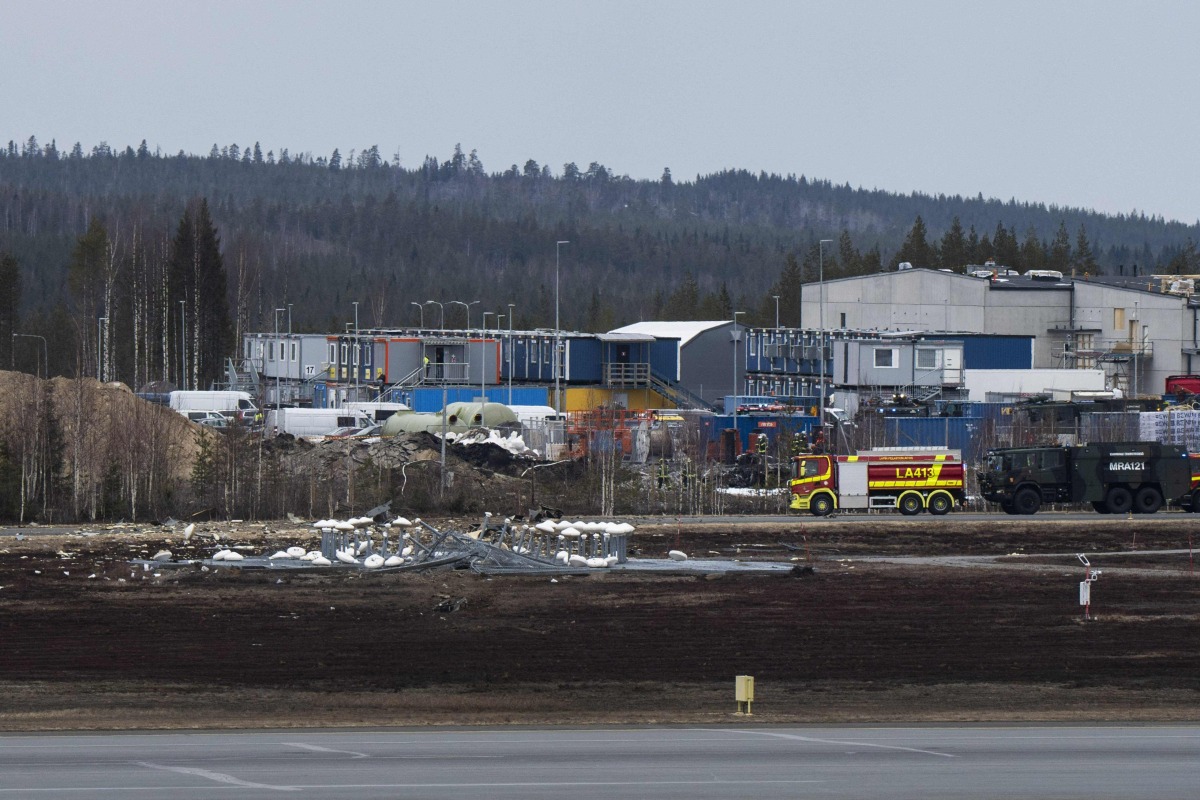 Rescue personnel and vehicles are seen at the Rovaniemi Airport in Rovaniemi, Finnish Lapland on May 7, 2025, after the crash of a Hornet fighter jet. Photo by Jouni Porsanger / Lehtikuva / AFP