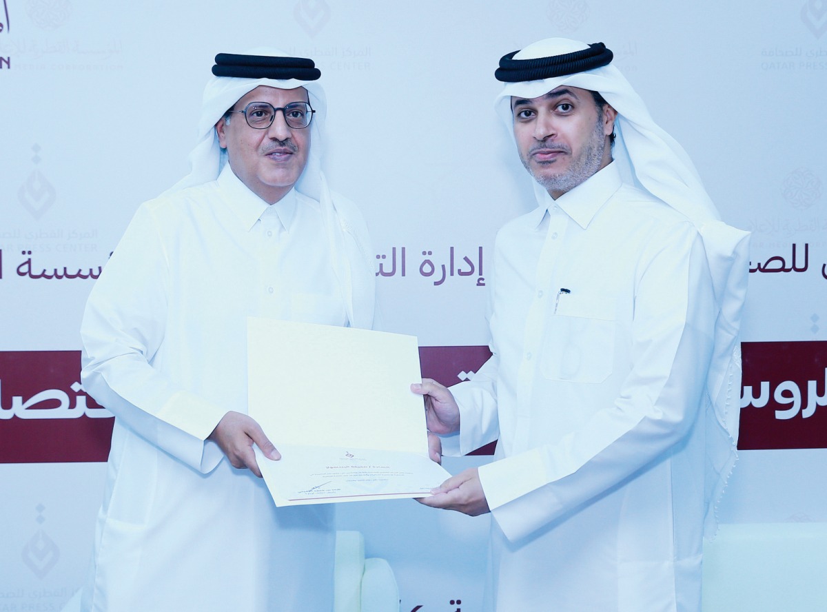 At the end of the session Qatar Press Center honoured The Peninsula and other local media appreciating their efforts in giving intensive coverage to the activities and events of the centre.