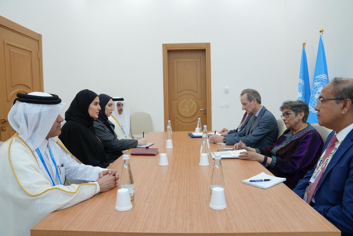 Awaza: Minister of State for International Cooperation HE Dr. Mariam bint Ali bin Nasser Al Misnad met with the United Nations Under-Secretary-General and High Representative for the Least Developed Countries, Landlocked Developing Countries and Small Island Developing States HE Rabab Fatima. The meeting took place on the sidelines of the United Nations Conference on Landlocked Developing Countries, being held in Awaza, Turkmenistan.