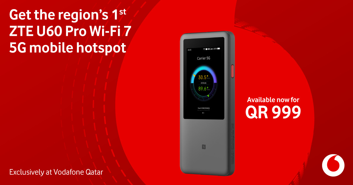 Doha, Qatar: Vodafone Qatar has announced the launch of the region’s first ZTE U60 Pro Wi-Fi 7 5G mobile hotspot device. The cutting-edge device is exclusively available through Vodafone Qatar, offering customers incredible speed, connectivity, and portability.