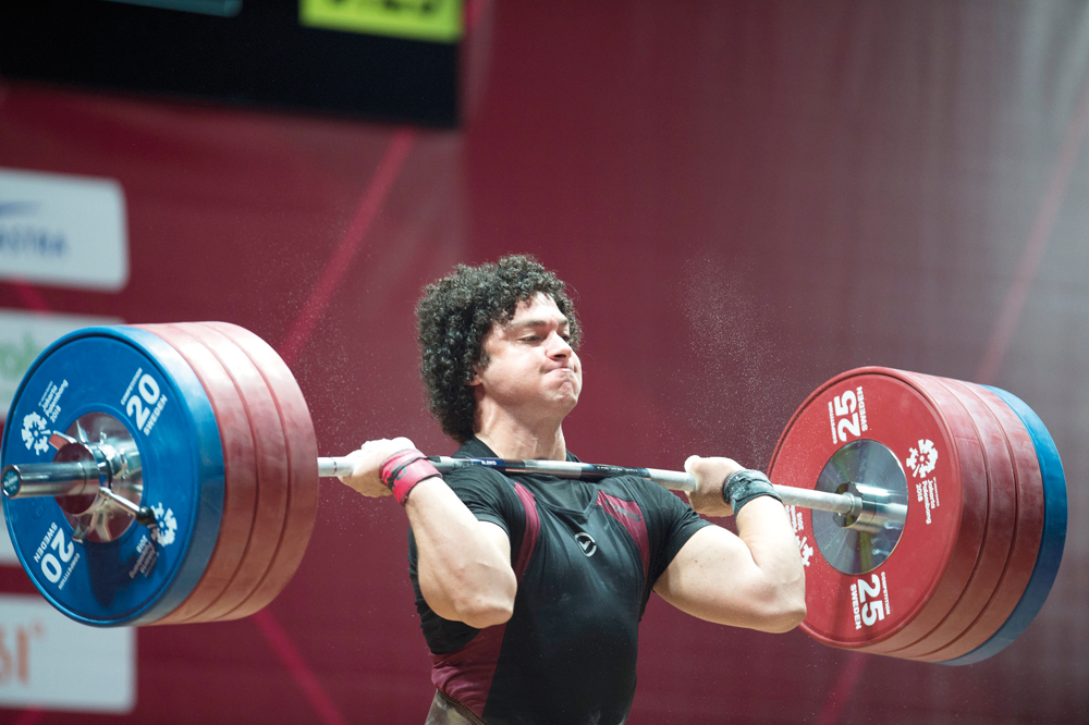 Qatar's Fares Ibrahim in action during the 2018 Asian Games men's weightlifting 94kg event in Jakarta, Indonesia, in this August 25, 2018 file photo.