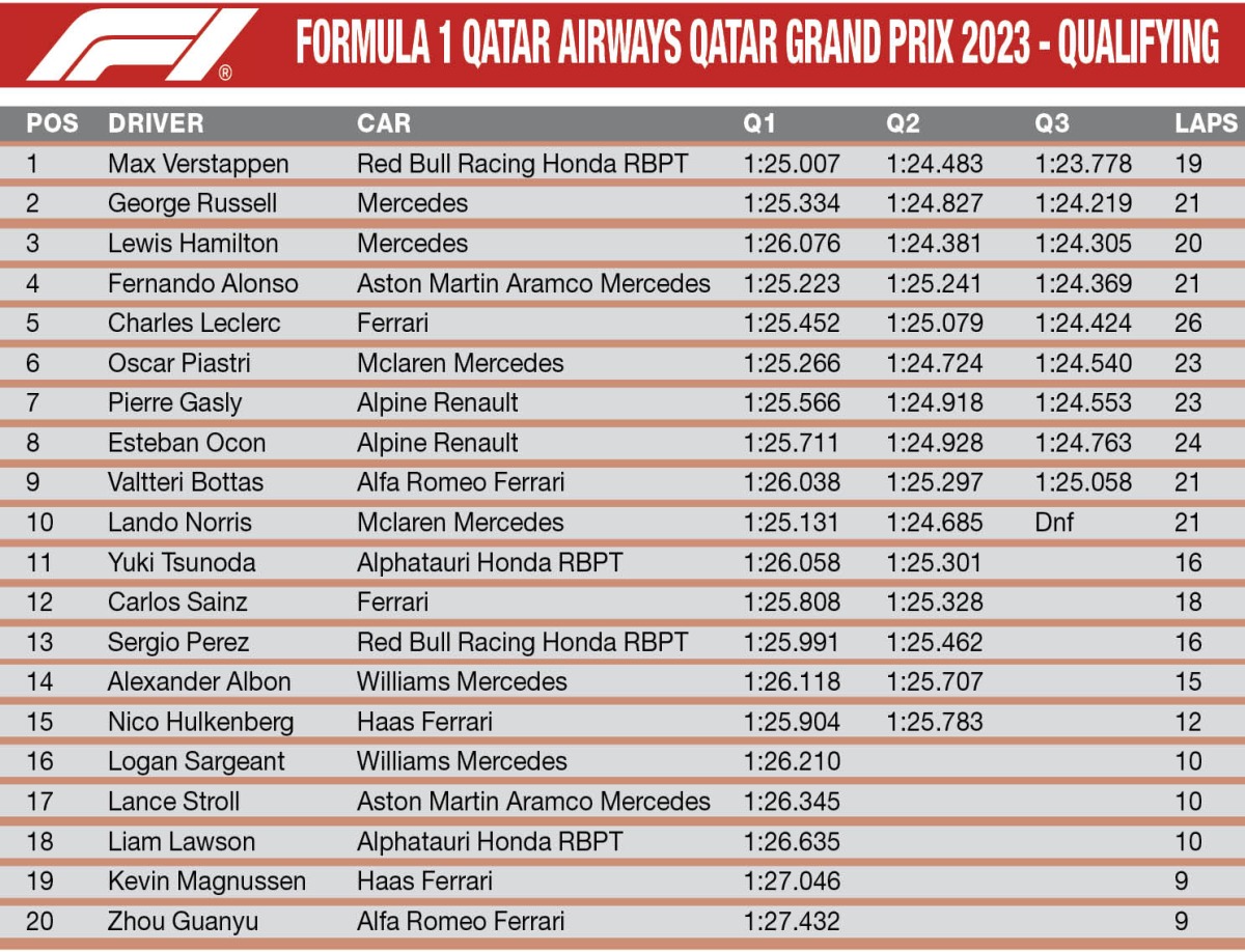 After setting the fastest time of 1:27.428 in the only practice session, the Red Bull’s runaway series leader took the pole position – his 10th of the season – for tomorrow’s Grand Prix capping a phenomenal day with a brisk 1m 23.778s – his only lap in Q3.
