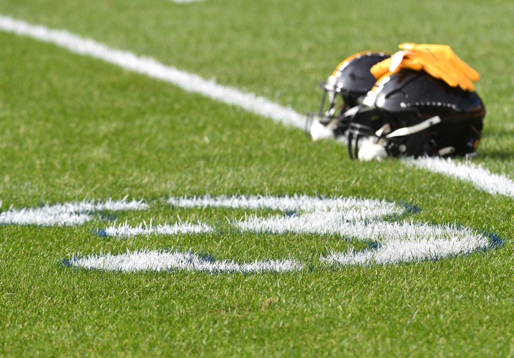 The three is outlined in blue in recognition of Damar Hamlin before the Pittsburgh Steelers play the Cleveland Browns at Acrisure Stadium, January 8, 2023. (Philip G Pavely-USA TODAY Sports via Reuters)