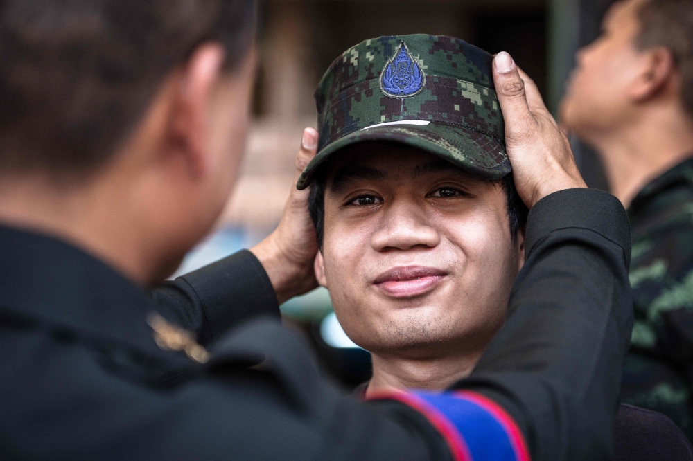 "He doesn't want to join (the military) because he has to work and take care of his partner," Taweepong said.