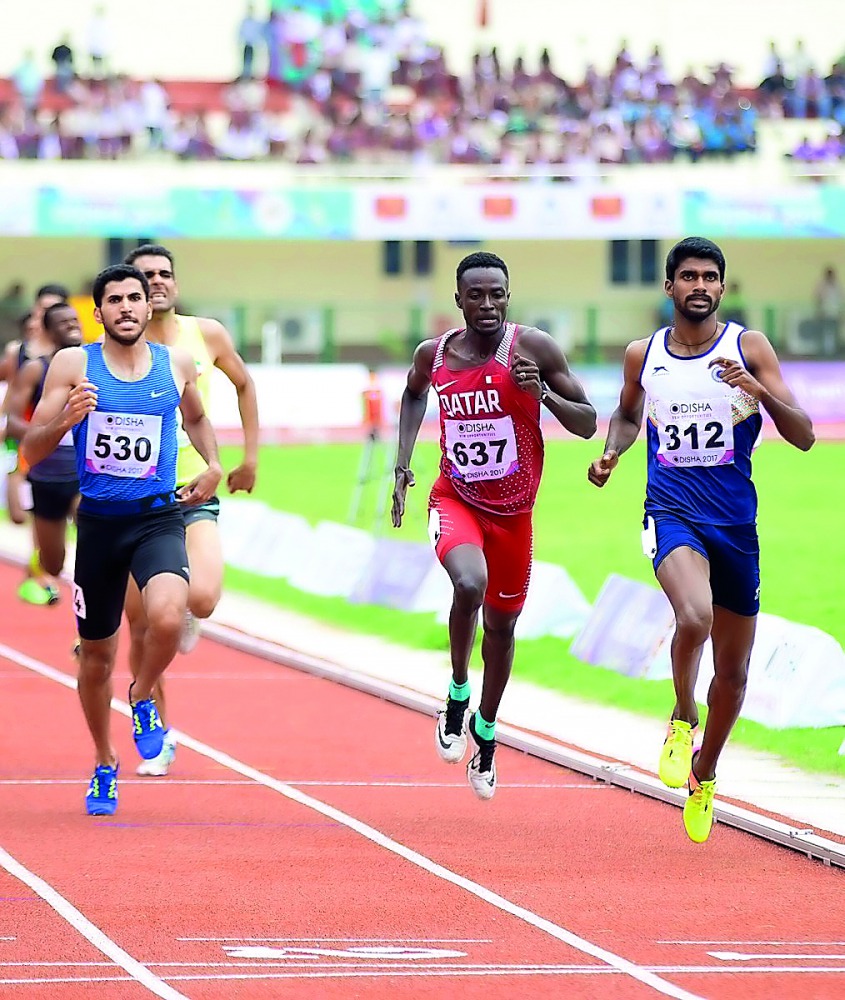 Qatar's Jamal Hairane (#631) competing in the first round of the men's 800 meters of the 22nd Asian Athletics Championship 2017 in Bhubaneswar, Odisha, India yesterday. Hairane and his team-mate Mohamed Nasir, both qualified for today's final.