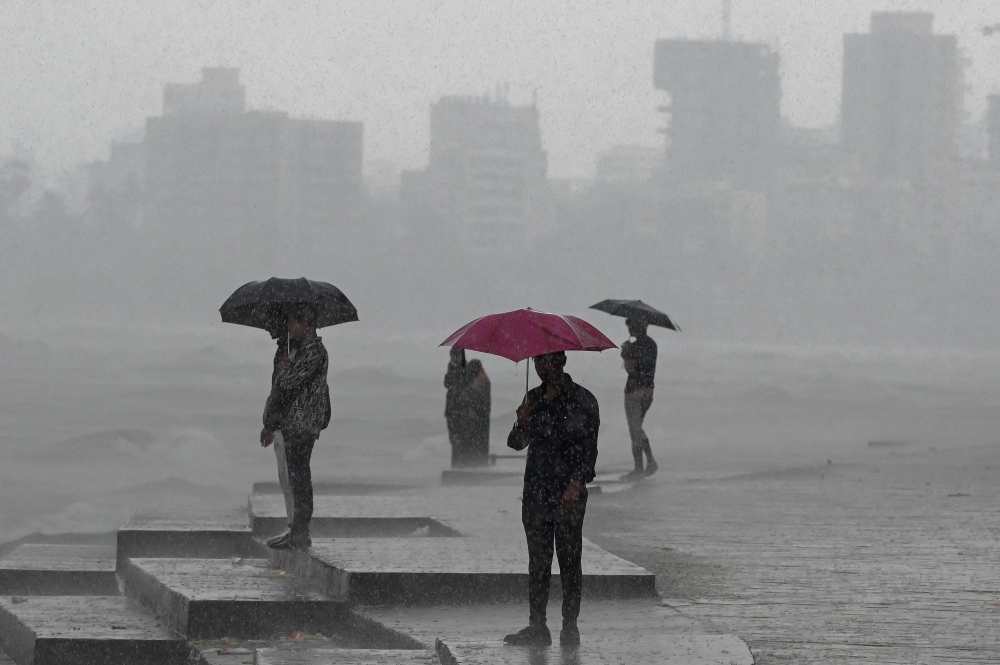 Rain showers near the sea front in Mumbai on July 8, 2024. (Photo by Punit Paranjpe / AFP)