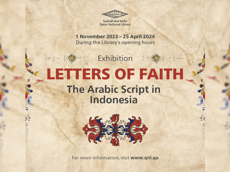 Qatar National Library invites everyone to see "Letters of Faith: The Arabic Script in Indonesia," as part of Qatar-Indonesia Year of Culture 2023. Immerse yourself in the rich Islamic heritage through illuminated Quranic manuscripts, and discover the many ways in which the Arabic script has left its mark across diverse media. Don't miss this chance to appreciate these cultural gems that connect Indonesia and the Arab world in a shared appreciation of artistic and religious heritage. The exhibition is open to everyone, and no registration is required.