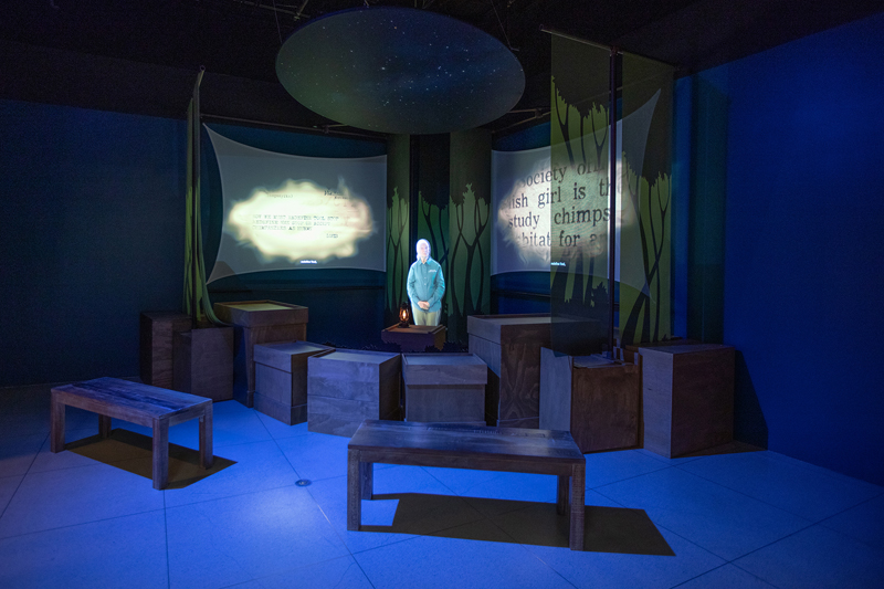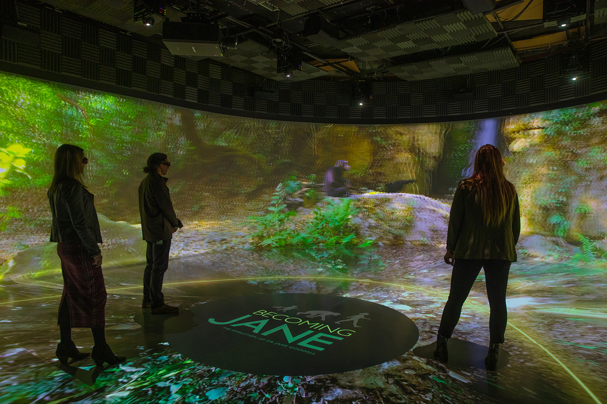 Jane Goodall herself appears in hologram form at the National Geographic Museum.