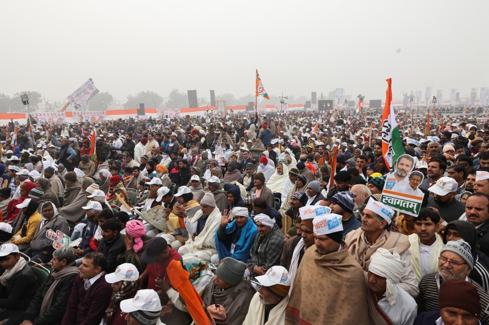 Supporters of India's main opposition Congress party attend a public rally by party leader Rahul Gandhi, in Panipat, India, January 6, 2023. Reuters/Anushree Fadnavis