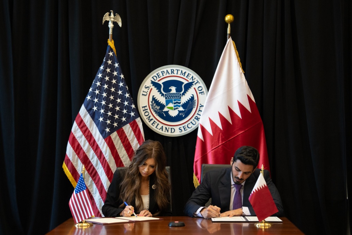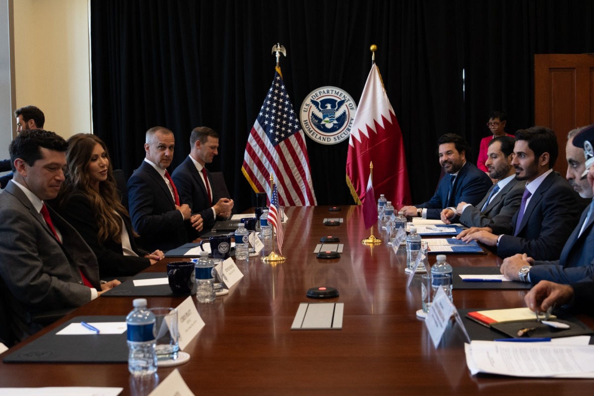 Washington: Minister of Interior and Commander of the Internal Security Force (Lekhwiya) HE Sheikh Khalifa bin Hamad bin Khalifa Al-Thani met with Secretary of the Department of Homeland Security of the United States of America HE Kristi Noem, during His Excellency's official visit to Washington DC