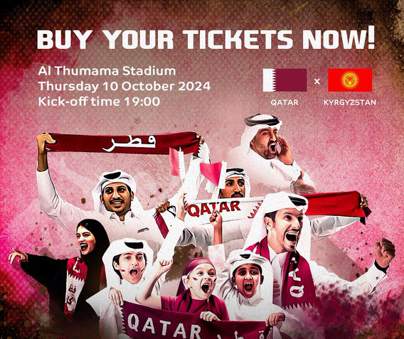 Few tickets left to FIFA World Cup 2026 qualifying match between Qatar and Kyrgyzstan! It's going to be more exciting as this is Qatar’s third World Cup qualifying match after a defeat to the UAE and a draw against North Korea last month. Don’t miss your chance, get your tickets here.