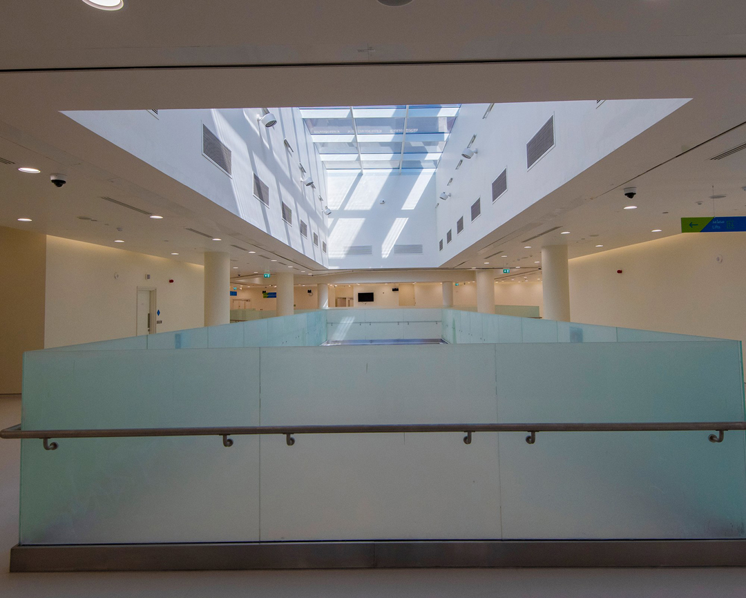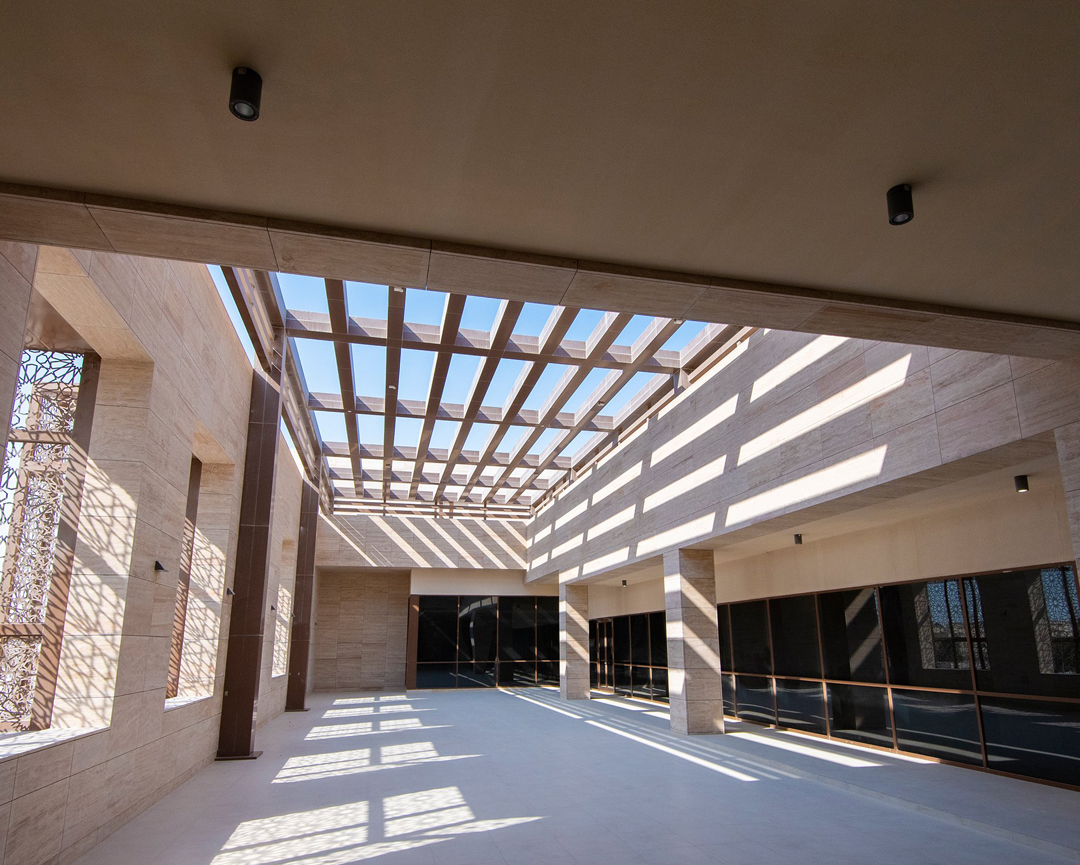 • Use of natural lighting by making panoramic openings in the ceilings to allow sunlight entry, contributing to saving electric energy used in lighting, and purifying the place as much as possible.