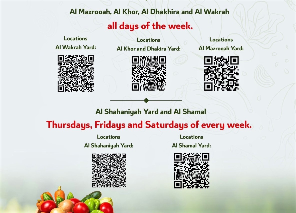 Over 100 local farms offering fresh locally-grown vegetables are available at five winter markets in the country. The seasonal markets which offer agricultural produce at competitive prices are located in Al Mazrooah, Al Khor-Al Thakhira, Al Wakrah, Al Sheehaniya, and Al Shamal.