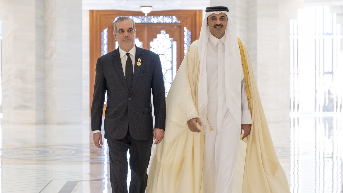 Doha, Qatar: The Amir His Highness Sheikh Tamim bin Hamad Al Thani held an official session of talks at the Amiri Diwan this morning with His Excellency President Luis Rodolfo Abinader of the friendly Dominican Republic.