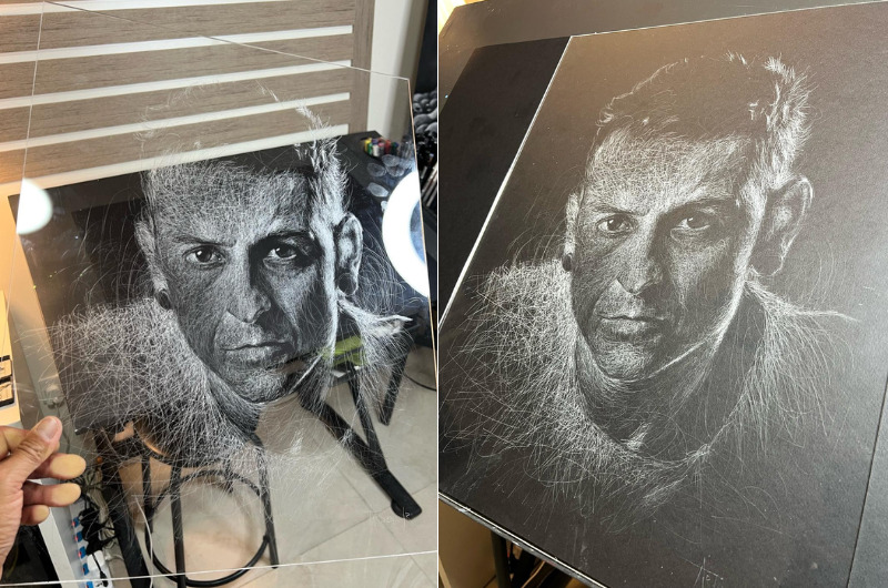 Arsenio Jr Nidoy, better known as “Artsenic” in the Filipino community, has taken this everyday hand tool and transformed it into a medium for creating intricate and stunning portraits on acrylic sheets.