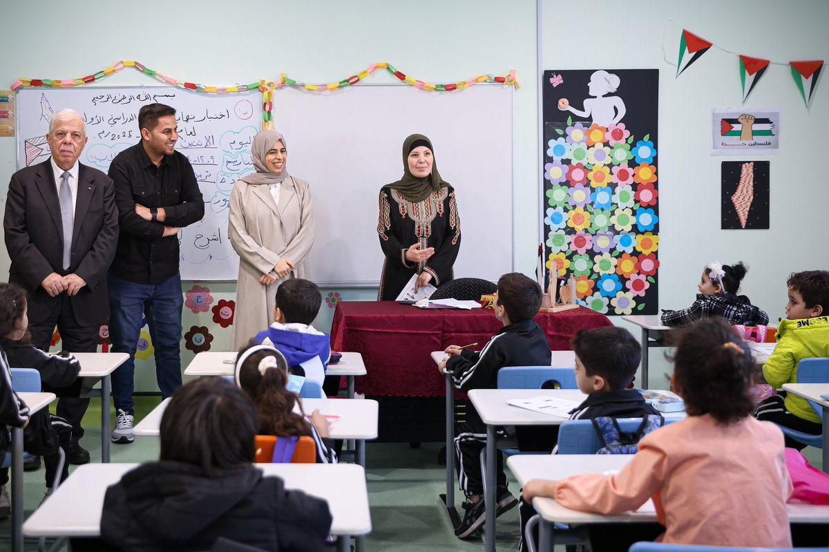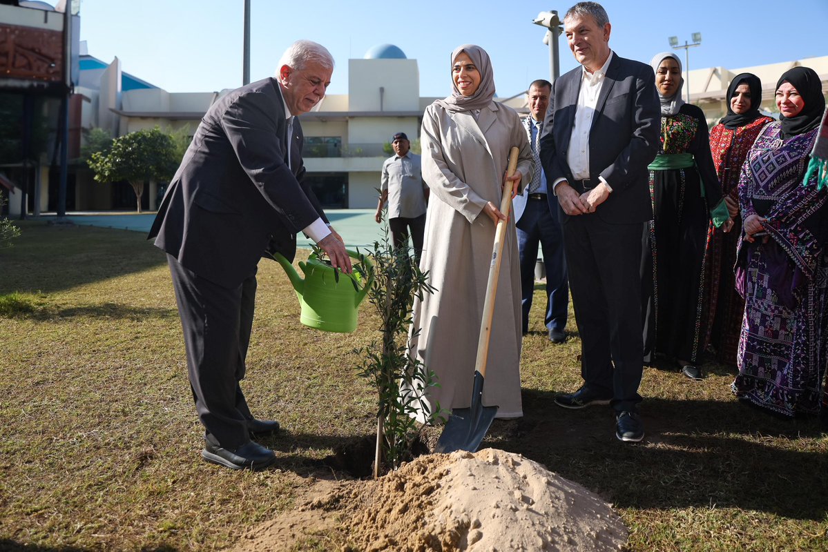 At the end of the visit, HE the Minister and the Commissioner-General of UNRWA planted an olive tree in the courtyard of the Palestinian school, in the presence of students, teaching and administrative staff, expressing their desire to establish peace and give students hope to return to school in Palestine.