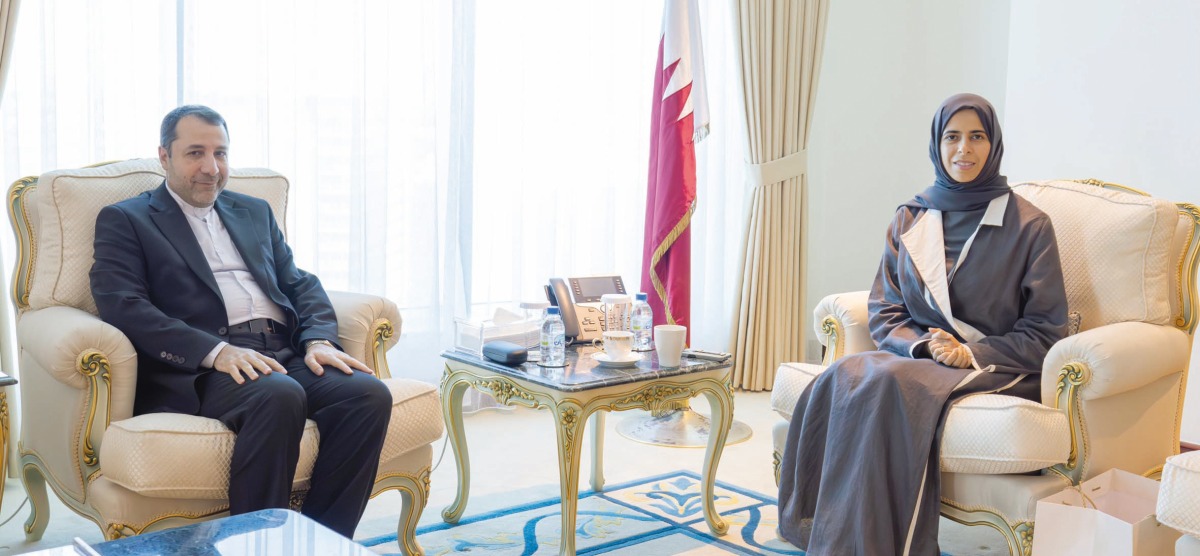 Minister of State for International Cooperation at the Ministry of Foreign Affairs H E Lolwah bint Rashid Al Khater met yesterday separately with Ambassador of the Sultanate of Oman to the State of Qatar H E Ammar bin Abdullah bin Sultan Al Busaidi and Ambassador of Iran to Qatar H E Ali Salehabadi.