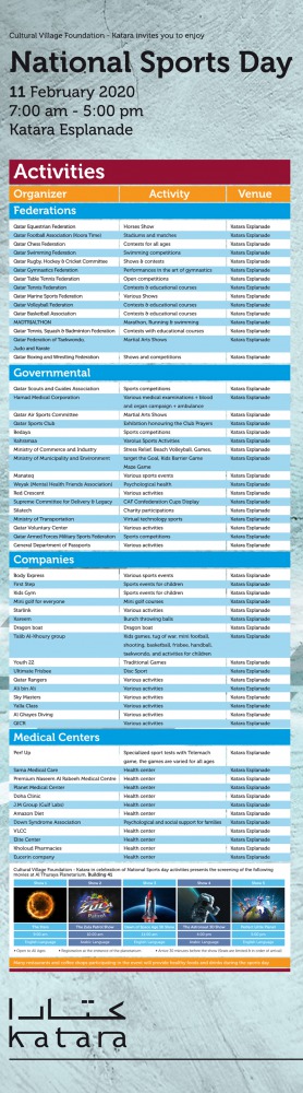 Doha: Katara is ready to receive thousands of visitors tomorrow, Tuesday, February 11, to take part in the 9th edition of National Sport Day.