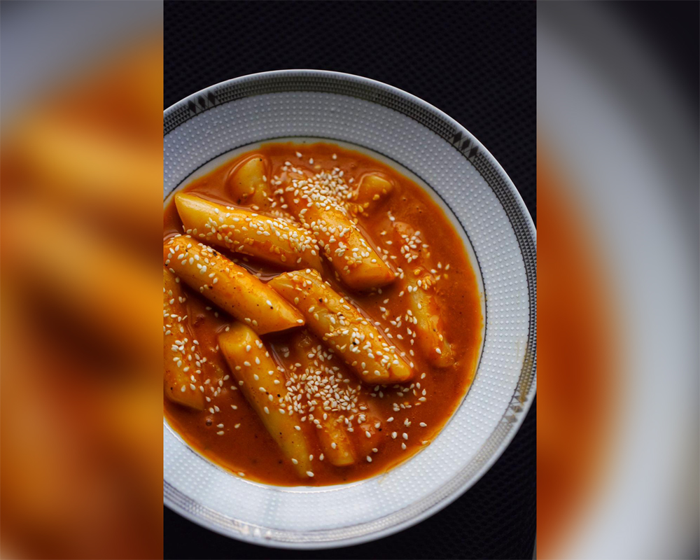 Korean dish Spicy Tteokbokki made by Gopika Chandra