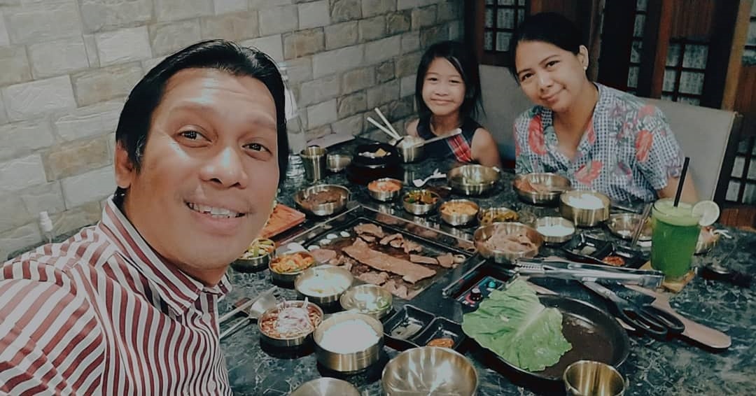 Filipino food blogger, Zeke Tunay, with his family at a Korean restaurant in Qatar.