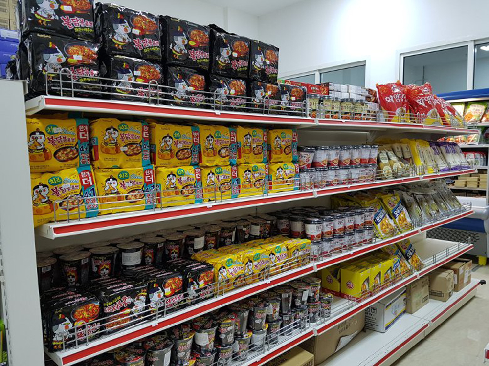 Korean instant noodles and other products seen on the shelves of a Doha store. Photo by Zeke Tunay