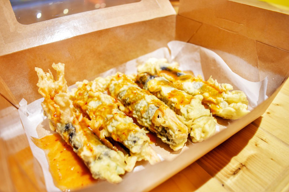 Fried Japchae roll prepared in a Korean restaurant in Qatar. Photo by Zeke Tunay.