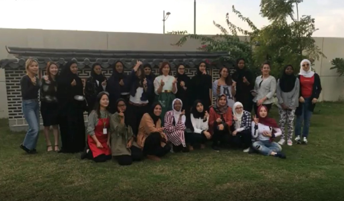A pre-pandemic photo of QatarBTSArmy in 2018 during a cooking lesson at the Korean embassy in Qatar.