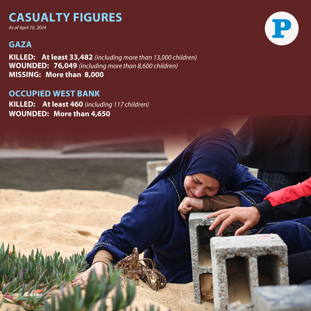 Palestinian Territories: The health ministry in Gaza said on Wednesday that at least 33,482 people have been killed in the territory during more than six months of war between Israel and Palestinian militants.