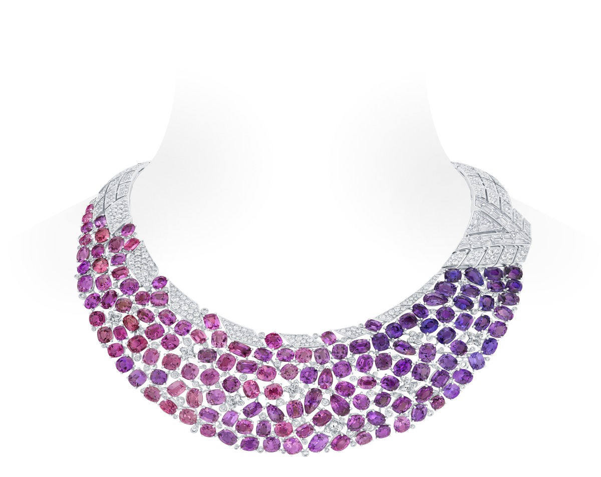 The showstopper piece will be presented for the first time at DJWE [Booth C8]. The necklace is an extraordinary creation of 186.42 carats featuring more than 140 multi-coloured sapphires and diamonds. Make sure to take note of LV’s patented diamond cuts which are based on the luxury brand’s iconic monogram flowers – a round-cut flower diamond, and a pointed-cut flower diamond.