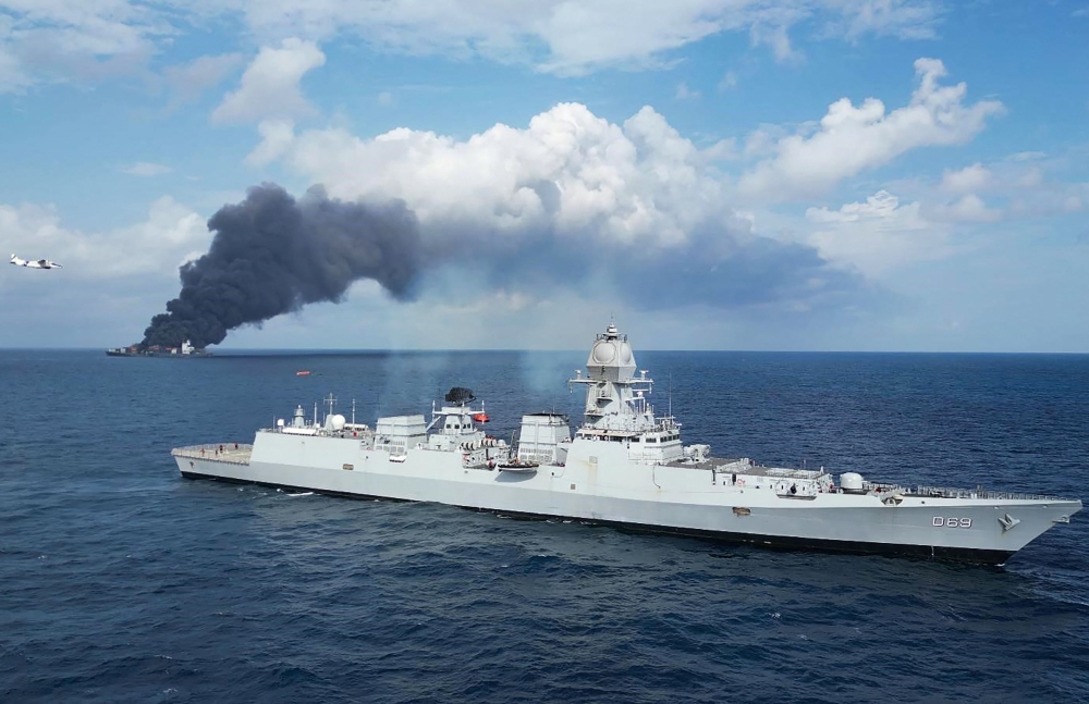 A Liberian-flagged container ship with hazardous cargo sank off the coast of Kerala on May 24. The Indian navy rescued all 24 crew members.