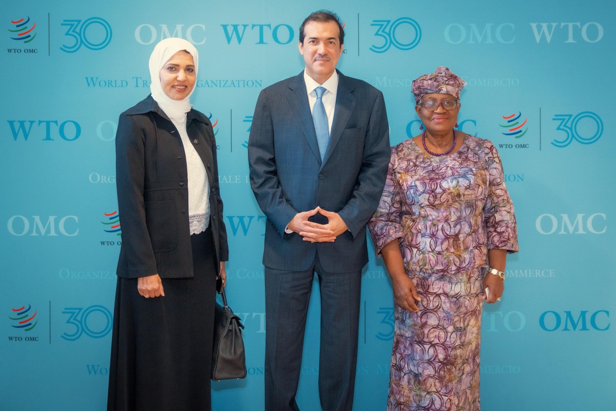Minister of State for Foreign Trade Affairs, H E Dr. Ahmed bin Mohammed Al-Sayed with Director-General of the World Trade Organization, H E Dr. Ngozi Okonjo-Iweala.