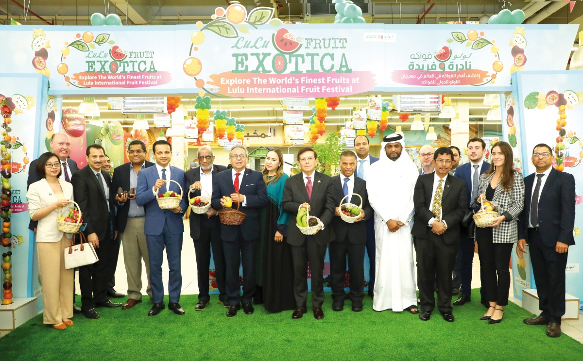 Lulu officials with Their Excellencies Ambassadors and guests during the opening of International Fruit Festival at Lulu outlet in Al Gharafa.