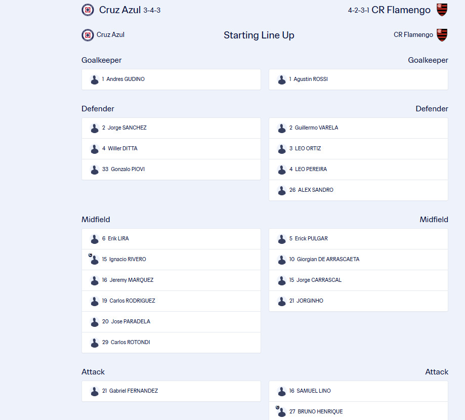 10’ The match remains level as both sides battle for control. Play is concentrated in the midfield, with intense physical duels defining the early minutes between Cruz Azul and Flamengo.