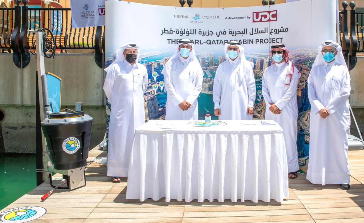 Officials during the Seabins Project at The Pearl Island.