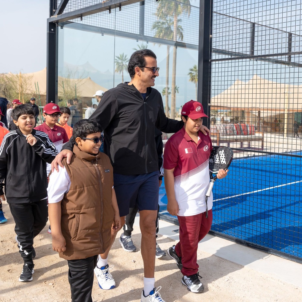 Amir practiced padel with a number of players from the Qatari padel team for juniors, in addition to a number of students from Dukhan Primary School for Boys, within the framework of interest in practicing various kinds of sports and encouraging the community to practice healthy practices.
