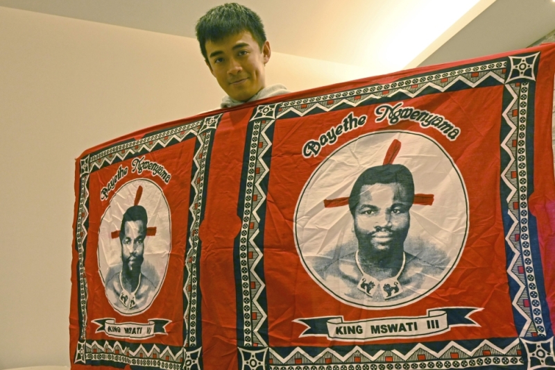 This picture taken on February 13, 2019 shows Taiwanese YouTuber Ben Wu displaying a cloth showing the portrait of King Mstwati III of eSwatini during an interview in Taipei. AFP / Sam Yeh